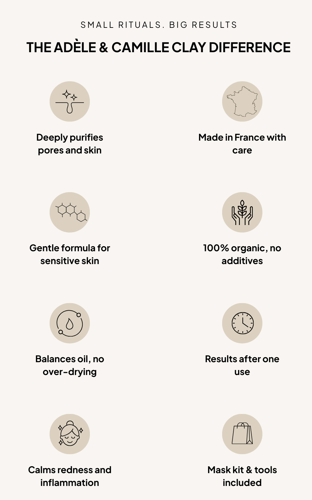Meet the Clay Set, your complete French masking ritual for clearer, brighter, healthier skin. Formulated with two high-performance clays โ
